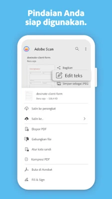 Adobe Scan adalah solusi terpercaya untuk mengelola alur kerja dokumen Anda, memastikan setiap informasi penting selalu tersedia dalam format digital yang mudah diakses dan dikelola.