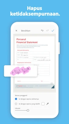 Tingkatkan produktivitas Anda dengan teknologi pengenalan teks optik (OCR) terdepan dari Adobe Scan, yang secara cerdas mendeteksi teks dalam gambar, membuatnya dapat dicari, disalin, dan diedit layaknya dokumen digital sungguhan. Manfaatkan beragam alat penyempurnaan yang intuitif untuk memotong, memutar, mengatur warna dan kecerahan, bahkan menghapus noda, coretan, atau kerutan yang tidak diinginkan dari pindaian Anda. Dengan kemampuan ini, setiap dokumen fisik dapat diubah menjadi aset digital yang jelas dan bersih, siap untuk tindakan lebih lanjut.