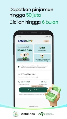 Temukan solusi finansial cerdas untuk berbagai kebutuhan Anda bersama BantuSaku. Platform pinjaman daring ini menawarkan kemudahan akses dana tunai mulai dari Rp1.000.000 hingga Rp20.000.000 dengan jangka waktu pembayaran yang fleksibel, mulai dari 91 hingga 180 hari. Dapatkan ketenangan pikiran dengan suku bunga tahunan maksimal 36%, tanpa biaya tersembunyi yang mengejutkan. Sebagai penyedia layanan keuangan yang terpercaya, BantuSaku bangga telah berizin dan diawasi resmi oleh Otoritas Jasa Keuangan (OJK) dengan Surat Tanda Berizin Nomor: KEP-91/D.05/2021, memastikan setiap transaksi Anda aman dan sesuai regulasi.