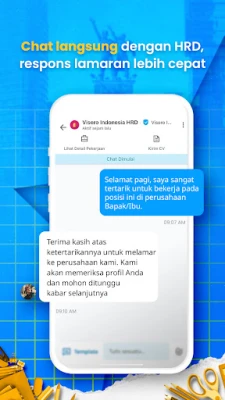 Glints TapLoker tidak hanya menyederhanakan proses melamar, tetapi juga membangun jembatan komunikasi langsung dengan calon atasan. Berinteraksi secara *real-time* dengan HRD untuk menanyakan progres lamaran, mendiskusikan detail pekerjaan, atau menjadwalkan wawancara penting. Dapatkan notifikasi terkini saat lamaranmu dilihat, lowongan baru yang sesuai muncul, atau saat jadwal wawancara diperbarui, memastikan setiap langkahmu dalam meraih pekerjaan impian selalu terinformasi dan responsif.