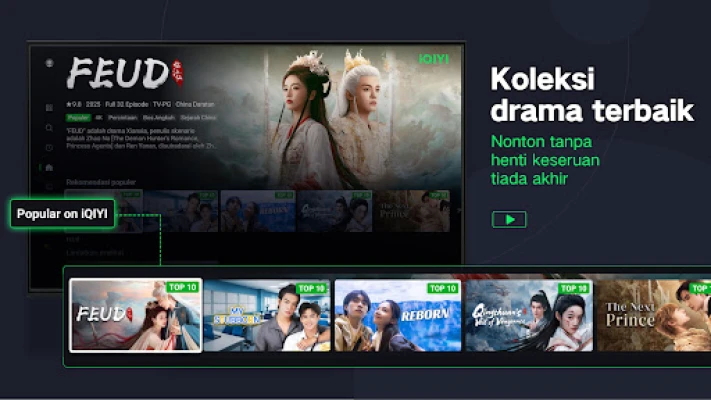Nikmati konten eksklusif iQIYI dengan subtitle Bahasa Indonesia dan pengalaman menonton yang lancar. Desain aplikasi ringkas untuk hiburan terbaik Anda. Tonton serial populer dan film favorit kini hadir di Indonesia!