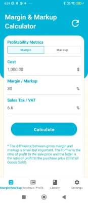 **Margin & Markup Calculator** adalah mitra esensial Anda dalam mencapai profitabilitas berkelanjutan. Dengan kemampuan untuk mengoptimalkan strategi penetapan harga dan memberikan wawasan keuangan yang komprehensif, aplikasi ini memberdayakan Anda untuk meningkatkan standar bisnis Anda ke tingkat kecanggihan yang belum pernah ada sebelumnya. Fokus pada pertumbuhan, biarkan kami mengurus angka-angkanya.