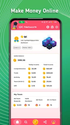 Sistem pengumpulan hadiah harian QC Network sangat sederhana: cukup ketuk untuk mengklaim bonus virtual Anda setiap 24 jam, tanpa memerlukan peralatan khusus, daya komputasi, atau perangkat keras penambangan. Sebuah notifikasi hadiah akan muncul secara otomatis setelah periode tunggu selesai. Pantau semua koin dan hadiah Anda secara real-time melalui sistem dompet virtual yang komprehensif, mencakup beragam jenis koin seperti Koin Utama dari klaim harian, Koin Hadiah dari acara dan bonus, Koin Tukar dan Koin Aktivitas yang didapatkan dari partisipasi tugas, serta Koin Referal dan Koin Tim untuk meningkatkan koleksi melalui program rujukan. Anda juga dapat menukarkan token yang terkumpul di dalam aplikasi melalui sistem pertukaran yang aman, dengan semua transaksi ditandai secara jelas untuk transparansi.