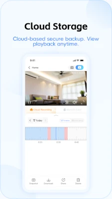 Keamanan Anda adalah prioritas utama V380. Aplikasi ini dilengkapi dengan alarm deteksi gerakan canggih yang secara otomatis menyimpan rekaman ke server saat aktivitas terdeteksi, memastikan tidak ada momen penting yang terlewat. Dengan teknologi transmisi streaming cloud yang cerdas, Anda akan menikmati kualitas video HD 720P yang jernih dan stabil melalui jaringan publik. Fitur tambahan seperti zoom digital, fungsi preset, dan konfigurasi WIFI Smartlink — termasuk dukungan AP cepat dan pemindaian ID perangkat melalui kode QR — menjadikan pengaturan kamera V380 Anda sangat mudah. Layanan penyimpanan cloud juga tersedia, mengunggah video ke server untuk keamanan data yang lebih terjamin.